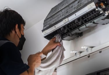 Serviços de limpeza e higienização de ar-condicionado.